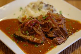 - Serve whole at the dinner table, or slice into ½- ¾ inch slices with a generous helping of gravy. Garnish with caramelized onions. Suggested side; Roasted Garlic Mashed Potatoes.